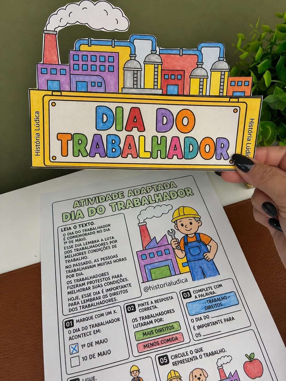 ✔ Letreiro “Dia do Trabalhador” para colorir e montar