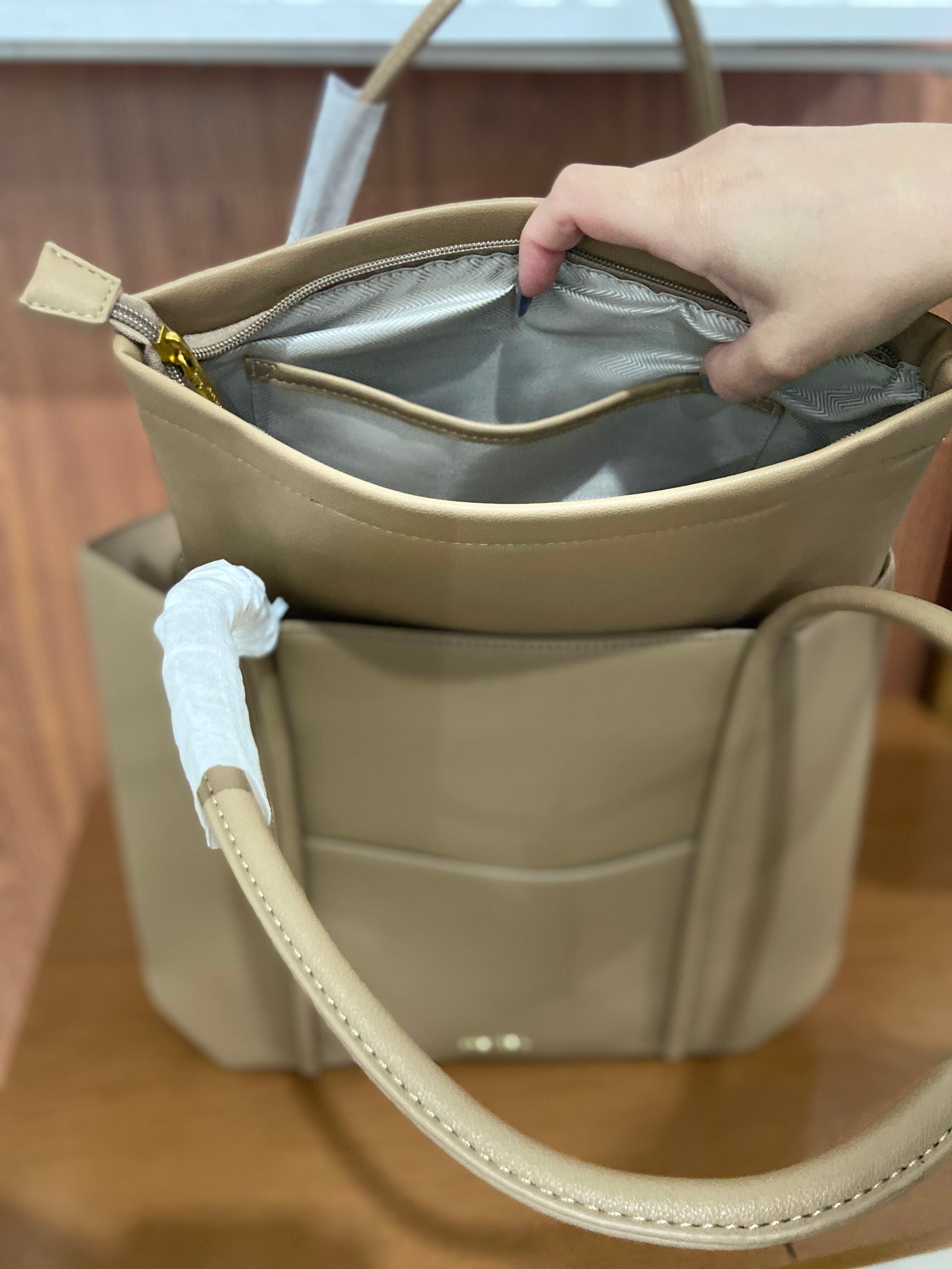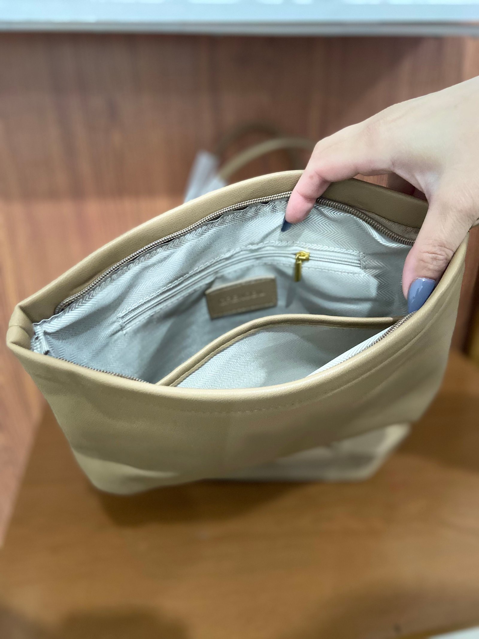 Bolsa tote feita em material premium que imita couro, com design elegante e super resistente. O modelo é amplo e estruturado, ideal para professores que precisam carregar cadernos, provas, planner, estojos e materiais escolares sem perder a organização. Possui vários compartimentos internos e externos que facilitam o acesso rápido aos itens. Leve, sofisticada e em cor neutra que combina com qualquer look profissional. Uma bolsa prática para acompanhar a rotina na escola com muito estilo.