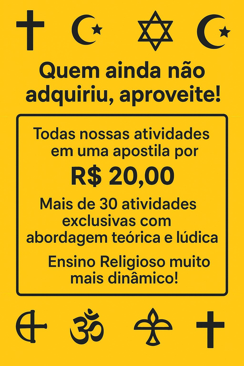 São mais de 30 atividades para o 6º ao 9º ano, tornando o Ensino Religioso mais atrativo e reflexivo.
