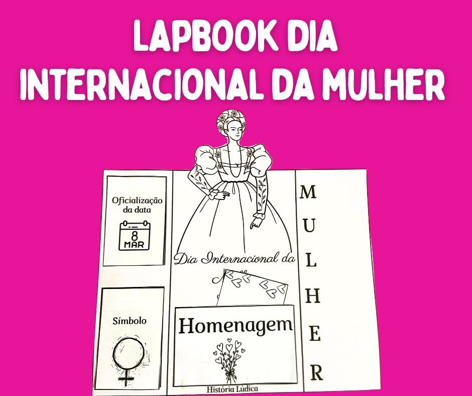 Material simples para ser trabalhado no dia da mulher lapbook com apenas uma página de impressão onde traz recortes e colagens para o aluno preencher a oficialização da data o símbolo da luta feminina e também um acróstico