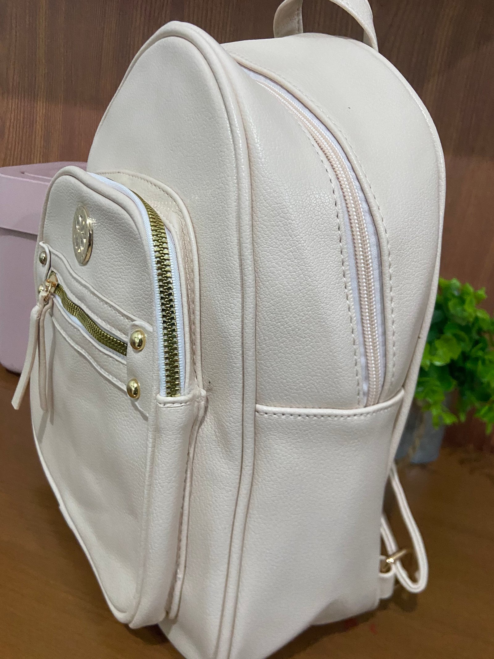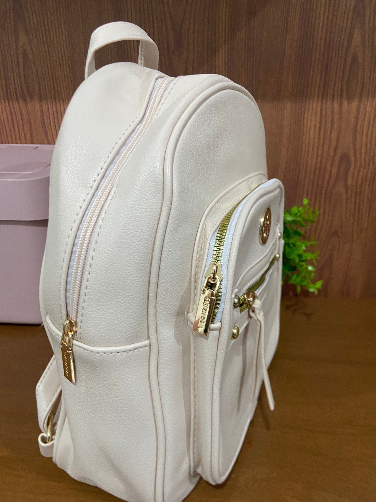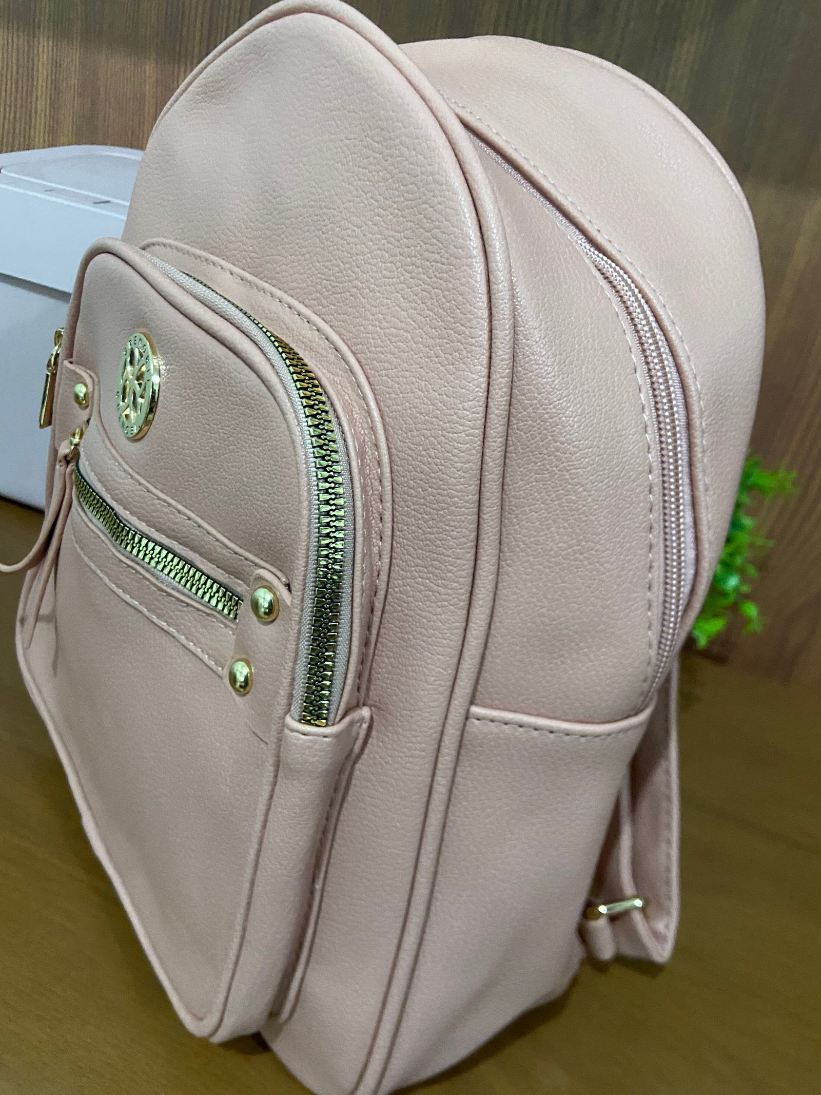 A Mochila Bella é perfeita para quem busca praticidade com um toque de elegância. Feita em material premium que imita couro, possui acabamento sofisticado, detalhes dourados e bolsos frontais que facilitam o acesso aos itens do dia a dia. Compacta por fora e surpreendentemente espaçosa por dentro, é ideal para trabalho, estudos ou passeios. Uma peça leve, charmosa e versátil para combinar com qualquer look.