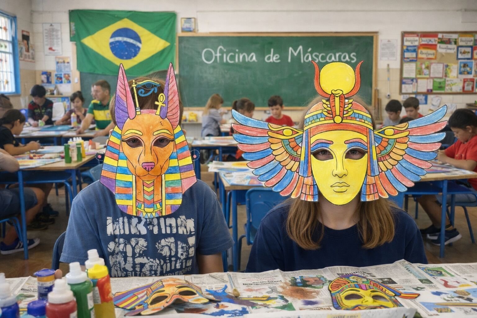 A Oficina de Máscaras Históricas – Especial de Carnaval é um recurso pedagógico lúdico que une História, Arte e Cultura, permitindo que os alunos aprendam de forma prática enquanto constroem suas próprias máscaras históricas inspiradas em civilizações antigas.