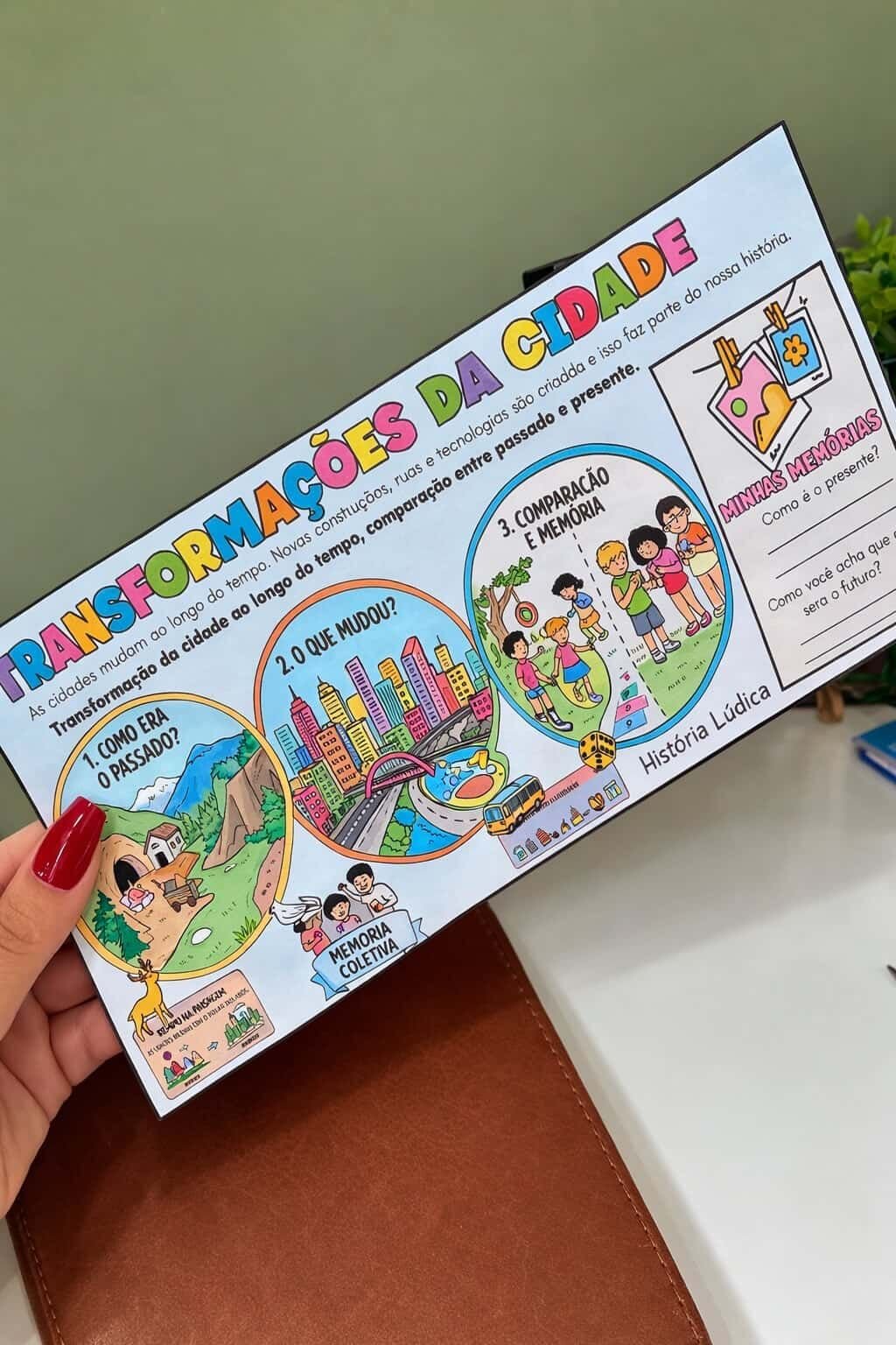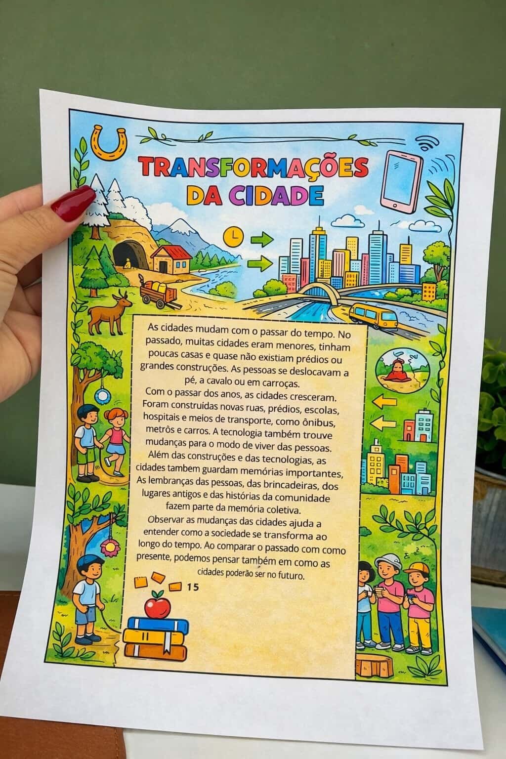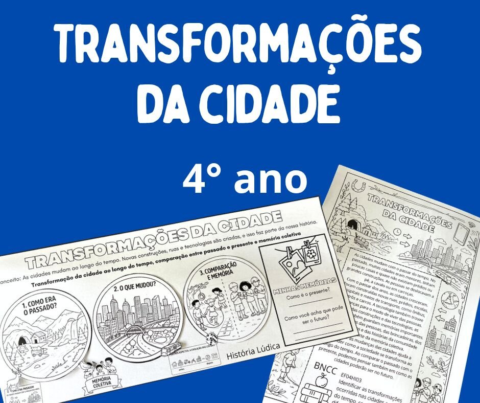 Atividade de história para 4⁰ ano: Esta atividade foi desenvolvida para ajudar os alunos a compreenderem como as cidades se transformam ao longo do tempo, comparando o passado, o presente e as possibilidades para o futuro.